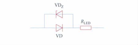 單個LED 仿真模型如圖4 所示,其中VD 為理想二極管,VDZ為理想單向擊穿二極管,RLED為LED等效串聯(lián)阻抗。仿真中設(shè)定單向擊穿二極管VDZ兩端電壓為: UD = 3. 0 V,設(shè)定等效串聯(lián)阻抗為: RLED = 0. 35 Ω。
