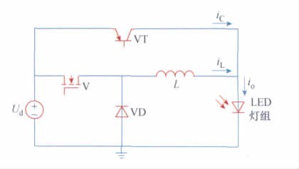 通過LED 的電流iO為恒定直流,如圖2 所示,實現(xiàn)了對電感紋波電流的全補償。