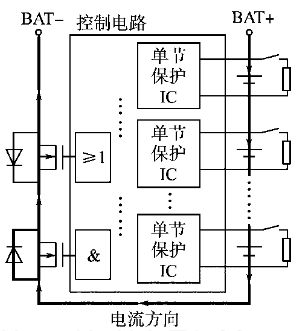 系統(tǒng)中控制電路部分單節(jié)鋰電池保護芯片的充電過電壓保護控制信號經(jīng)光耦隔離后并聯(lián)輸出,為主電路中充電開關(guān)器件的導(dǎo)通提供柵極電壓;如某一節(jié)或幾節(jié)鋰電池在充電過程中先進入過電壓保護狀態(tài),則由過電壓保護信號控制并聯(lián)在單節(jié)鋰電池正負極兩端的分流放電支路放電,同時將串接在充電回路中的對應(yīng)單體鋰電池斷離出充電回路。