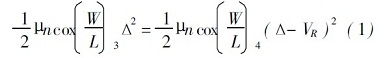 設電阻上的壓降為VR, M3 管的過驅動電壓為△, 由M3、M4 電流相等的條件, 得到: