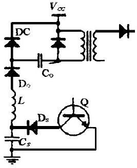 b. 饋能式復合緩沖電路(圖7) : 當晶體管關斷時, 電容Co和電感Ls 并聯運行,將貯存的能量饋送到負載。當電容Co 放電時,電感Ls 上的電壓逐漸減小為0 ,在這段時間內負載電流經續流二極管Df 導通。
