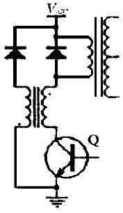 4) 無源回饋開通緩沖電路(圖5) :此電路通過變壓器將磁場貯能回饋到電源。變壓器為雙線繞制,其原邊具有一定電感;幅邊的極性與原邊相反,并且接有反向二極管。管子開通時,原邊承受全部電源電壓,副邊無通電回路。管子關斷時,副邊感應電壓極性換向,當其電壓高于電源電壓Vcc 時, 向電源饋送能量。