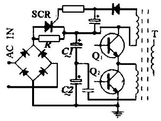 筆者在1000W半橋式開關電源的設計中, 首次用一個單向可控硅代替前端AC 輸入整流橋的一個橋臂, 其控制端由主變壓器的一個副繞組來控制(如圖9 所示) .這樣, 在電源接通的初始態, 該整流橋處于半波整流態。待電源啟動后, 可控硅導通, 整流橋轉為全波整流。由此可達到降低啟動電壓的目的。同時, 還可有效地抑止浪涌電流。實踐證明, 該電路簡單可靠很值得大家借鑒。