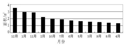 圖8 各月太陽能電池板對(duì)應(yīng)面積排列柱形圖