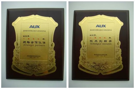 三菱電機常年來為奧克斯空調用DIPIPMTM的主要供應商,為奧克斯空調的核心部件的可靠性提供了強有力的技術支持。在供應商大會上,奧克斯空調有限公司總經理王玉龍授予了三菱電機“最佳戰略合作伙伴”榮譽;奧克斯空調有限公司副總經理兼技術中心總經理舒樂華為三菱電機頒發了“技術創新獎”。