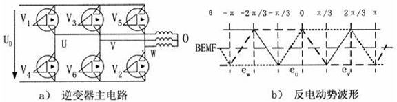 圖2 逆變器主電路和點擊的反電動勢波形圖