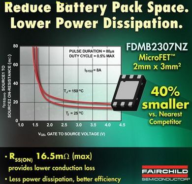 FDMB2307NZ:飛兆推出小尺寸高效率MOSFET用于便攜產品