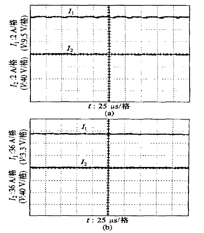 圖5 示出不同充電電壓時的充電電流波形。由圖可見,在不同充電電流給定下均取得了良好的實際充電電流波形,并且當蓄電池電壓變化時,因在線的變參數PI 調節,充電電流保持恒定,因此系統具有良好的動態性能和恒流特性。目前該充電電源己在多艘大型船舶中使用。