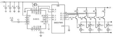 Si4313 的RX 端口經電容C1與天線相連, 接收遙控調制載波信號。Si4313 與單片機之間的通信是通過SPI 總線實現,SPI 總線讀寫操作由以下幾部分組成:讀寫標志(1 bit),地址(7 bits)和數據(8 bits)。讀寫標志位指示當前操作是讀還是寫;7 位地址指示操作對象, 可尋址128 個8 位控制寄存器中的任意一個; 數據域包含寫入或讀出的Si4313 內部寄存器的內容。Si4313 的SCLK、SDI、SDO、nSEL、nIRQ 端口分別與單片機的P0.0~P0.4 端口相連。SCLK 為時鐘接口;SDI為串行數據寫入端口, 由單片機對Si4313 進行數據寫入;SDO 為串行數據輸出端口,解調后數字信號由此端口輸出至單片機。單片機P1.0~P1.3 為控制端口,與開關電路相連。