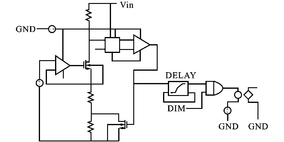 文中實現了一種簡單的滯流控制模塊,通過模塊內部自建滯環比較電壓, 結合DIM 控制端的PWM 信號控制功率開關管的通斷,實現對L ED 的恒流控制。
