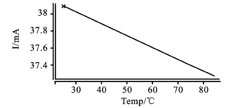 設(shè)置Rset為500Ω、Vcc為3V,令電路工作的環(huán)境溫度為25℃~85℃時,恒流輸出情況如圖6.驅(qū)動電流由37.3mA變化到38.1mA,波動百分比2.14%.