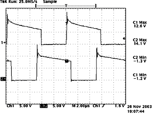 本文所設計的驅動電路簡單可行,驅動波形比較理想:有快速的上升沿,并在一開始有一定的過沖,可以加速開通,減小了開通損耗;同時,有反偏截止電壓,提供了足夠的反相門極驅動,減小了下降時間。