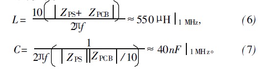 第1步應(yīng)選定濾波器拓?fù)浣Y(jié)構(gòu)。常用阻抗匹配的拓?fù)浣Y(jié)構(gòu)有4種,分別是并聯(lián)電容、串聯(lián)電感、L-C回路和C-L回路。ZPS和ZPCB的阻抗都在幾十歐至幾百歐間,若采用并聯(lián)電容拓?fù)浣Y(jié)構(gòu),并聯(lián)電容的值要遠(yuǎn)小于ZPS ||ZPCB的并聯(lián)電容,若采用串聯(lián)電感拓?fù)浣Y(jié)構(gòu),串聯(lián)電感的值要遠(yuǎn)大于ZPS+ZPCB的串聯(lián)電感,按并聯(lián)電容和串聯(lián)電感拓?fù)浣Y(jié)構(gòu)分別估算出C和L的值為: