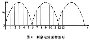 為保證剩余電流測量的實(shí)時(shí)性,該保護(hù)器采用數(shù)字采樣法測量剩余電流,將剩余電流信號(hào)轉(zhuǎn)換為圖4所示的波形,送給P87LPC767單片機(jī)內(nèi)部的A/D進(jìn)行采樣測量。