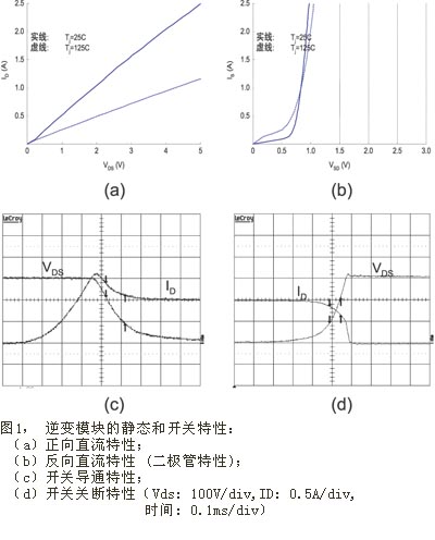 至于其反向特性 (參見圖1(a)),MOSFET中固有的體二極管可充當(dāng)IGBT逆變器中的快速恢復(fù)二極管 (FRD) ;即可以通過電子擴(kuò)散過程實(shí)現(xiàn)快速而平滑的恢復(fù)特性,同時(shí)節(jié)省了引線框內(nèi)芯片的占用空間。由于MOSFET比一般FRD尺寸大,其反向壓降小,而且在柵極為高時(shí),該壓降甚至?xí)。@是因?yàn)镸OSFET溝道本身就允許雙向電流。