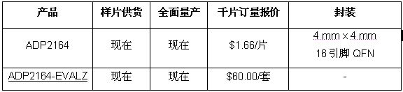 ADP2164的開(kāi)關(guān)頻率可設(shè)置于500 kHz至1.4 MHz之間,或與外部時(shí)鐘同步,以消除調(diào)節(jié)器間的拍頻。兩個(gè)ADP2164調(diào)節(jié)器也可以同步、相位相差180度,從而降低輸入紋波電流以及輸入電容的大小。該調(diào)節(jié)器基于電流模式、固定頻率PWM(脈寬調(diào)制)架構(gòu),具有出色的穩(wěn)定性和瞬態(tài)響應(yīng),并與ADP2118 5 V 3 A同步調(diào)節(jié)器引腳兼容。ADP2164針對(duì)高效率多電源軌應(yīng)用而設(shè)計(jì),工作溫度范圍為−40°C至+125°C結(jié)溫范圍。