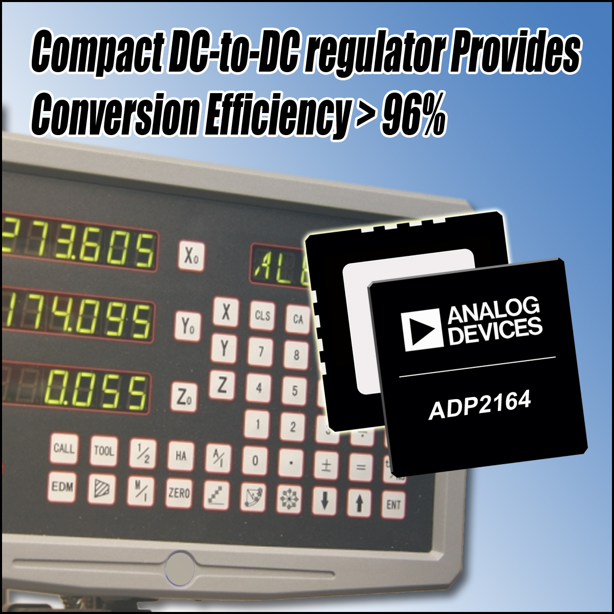 Analog Devices, Inc. (ADI),全球領(lǐng)先的高性能信號(hào)處理解決方案供應(yīng)商,最近推出一款6.5 V、4 A輸出DC-DC調(diào)節(jié)器ADP2164,其功率轉(zhuǎn)換效率大于96%。這款高集成度調(diào)節(jié)器ADP2164提供2.7 V至6.5 V輸入電源電壓范圍,輸出范圍低至0.6 V,內(nèi)置低導(dǎo)通電阻開(kāi)關(guān)FET,不僅能夠?qū)崿F(xiàn)最高效率,而且減少了電路板空間。ADP2164效率極高,采用緊湊型4 mm x 4 mm QFN 16引腳封裝。這款新型DC-DC調(diào)節(jié)器針對(duì)多電源軌、終端負(fù)載應(yīng)用而設(shè)計(jì),適合從通信基礎(chǔ)設(shè)施到工業(yè)設(shè)備的各種要求小尺寸、快速瞬態(tài)性能和高精度電壓調(diào)節(jié)的應(yīng)用。與其它5 V調(diào)節(jié)器不同,ADP2164的最大輸入范圍為6.5 V,可提供額外的安全裕量。