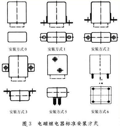 電磁繼電器不同的安裝方式,在不同的振動方向上,加速度的放大程度有很大的差異。SJl51A-84中規(guī)定的安裝方式有6種,如圖3所示。據相關資料統計,這6種安裝方式對加速度的放大程度從小到大的順序為2型,3型,5型,1型,6型,0型。但隨著科技的不斷發(fā)展,各行各業(yè)對電磁繼電器的需求也不斷增加,對電磁繼電器的性能及可靠性提出了更高的要求,安裝方式也隨著產品的實際狀態(tài)而不斷變化而變化,因此設計師在設計產品的印制線路板時,一定要考慮電磁繼電器的安裝方式,保證其觸點振動方向、銜鐵的吸合方向盡量和整機振動方向垂直;同時在安裝繼電器的印制線路板上采取減振措施,如鎖緊裝置、壓片安裝架等,但要注意減振措施中各個邊上的受力一定要平衡。