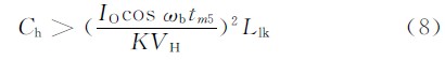 要想保證滯后橋臂的零電流開關,要求在滯后橋臂關斷之前原邊電流下降到0.原邊電流的下降主要發生在次級箝位節段,所以在次級開始箝位時Ch中的能量要能夠使Llk上的儲能得到全部釋放。即: