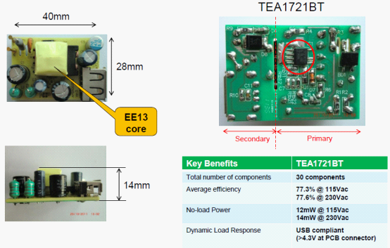 - TEA1716能幫助廠商開發出符合要求的小型電源適配器