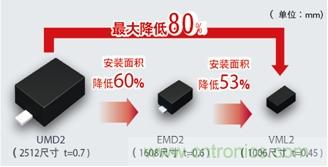 此次,產品陣容中新增了更加小型的VML2封裝(1.0×0.6mm)。通過這些產品,將非常有助于便攜設備節省空間。