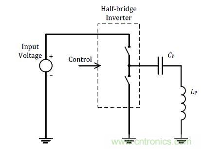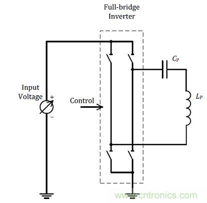 另外一個(gè)改變輸出功率的方式為改變發(fā)射端上的驅(qū)動(dòng)電壓,參考圖(二)所示,在同一線圈與電容的諧振組合中,當(dāng)于驅(qū)動(dòng)發(fā)射線圈上的開關(guān)電壓大小即直接改變的輸出功率的大小,在此將這個(gè)方式定義為變壓式功率調(diào)整。