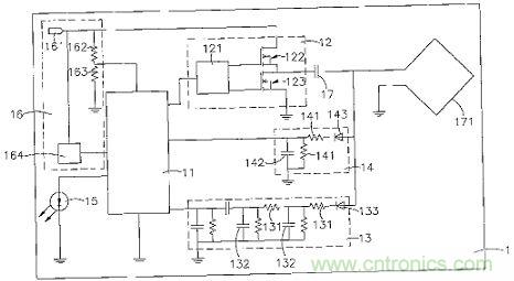 前段所提當(dāng)功率加大后因?yàn)槭茈姸松系挠嵦栒{(diào)制用負(fù)載電阻需要吸收較大的電流會產(chǎn)生功率損耗問題所以較為不可行,且為了反饋訊號容易被辯識需要有較大的反饋量使線圈上有較大的調(diào)制深度,這個(gè)設(shè)計(jì)下需將使接收端上的負(fù)載電阻設(shè)定較低的阻抗用來吸收更多的能量產(chǎn)生反饋,在這個(gè)循環(huán)下要提升感應(yīng)式電源供應(yīng)器之可用功率將遇到瓶頸。所以有廠商提出另一個(gè)電容式訊號調(diào)制方法。由香港ConvenientPower HK Ltd申請之美國專利公開號20110065398 UNIVERSAL DEMODULATION AND MODULATION FOR DATA COMMUNICATION IN WIRELESS POWER TRANSFER (用于無線電力中的數(shù)據(jù)調(diào)制與解調(diào)方法),參考圖(九)說明其內(nèi)容所提的在先前設(shè)計(jì)在受電端產(chǎn)生調(diào)制反饋能量的負(fù)載電阻改成電容,其因?yàn)椴捎秒娙菡{(diào)制時(shí)會在供電端發(fā)射線圈上產(chǎn)生電流與電壓相位差變化,所以可以利用分析此變化來進(jìn)行譯碼;這樣的設(shè)計(jì)可以不需要產(chǎn)生很大的調(diào)制深度即可達(dá)到反饋數(shù)據(jù)的目的,所以即使在較長的調(diào)制期間并不會消耗過多的能量。