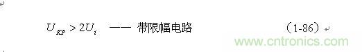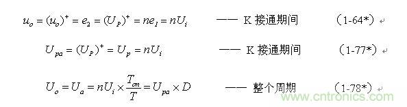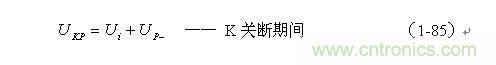 根據(jù)圖1-17,加到開關器件(控制開關)兩端的峰值電壓UKP正好等于輸入電壓Ui與反電動勢峰值Up-之和,即: