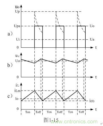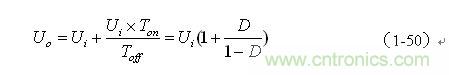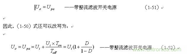 這里特別指出:(1-50)和(1-52)式的結果,雖然是以開關電源工作于電流臨界連續狀態的條件求得,但對于開關電源工作于連續電流狀態或斷流狀態同樣成立,因為,輸出電壓Uo是取自輸出脈沖電壓uo的半波平均值Upa,而不是取其平均值Ua。