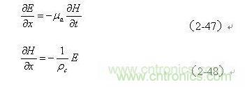 從圖2-19可以看出,磁場強度由H = Hz:和Hx = Hy = 0組成;對于電場強度,其指向平行于Y軸為E = Ey,Ex = Ez = 0。因此,上面兩式又可以改寫為: