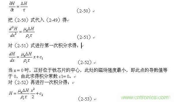 (2-48)式進行微分,然后代入(2-47)式,即可求得磁場強度的一維分布方程為: