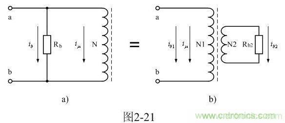 圖2-21-b是更形象地把渦流損耗等效成一個變壓器次級線圈N2給損耗電阻Rb2提供能量輸出,流過變壓器次級線圈N2的電流
