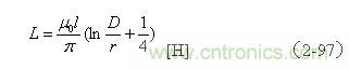 【說明】 上式用來計算空心線圈的電感,
