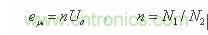 值得注意的是,當電源開關管Q1關斷時,由于變壓器次級線圈整流濾波電路D2和C2的接入,開關變壓器初、次級線圈的等效分布電容Cs相對于濾波電容C2來說,其作用將變得微不足道;此時,由于輸出電壓Uo通過變壓器初、次級線圈的耦合和反射作用,使得變壓器初級線圈產生的反電動勢電壓eu 完全被鉗制在一個與次級輸出電壓Uo成正比的數值上,即: