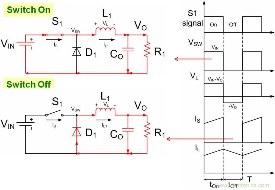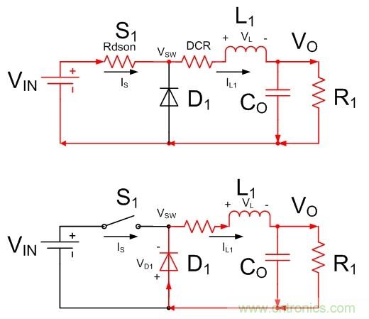 Buck電路是最常用的降壓開關電源。圖1所示為非同步的Buck電路。