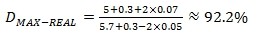 根據公式2,如果需要實現在VIN=5.7V下,保證VO=5V。 那么最大占空比為,
