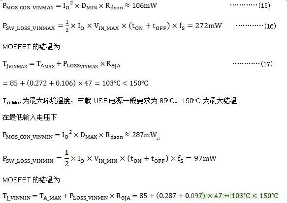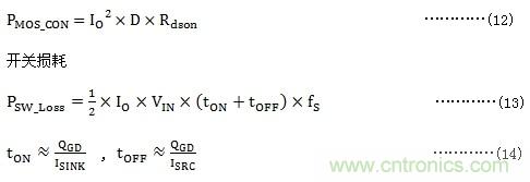 MOSFET承受的最高電壓為 VINMAX ,  考慮到拋負載保護,選取耐壓40V以上的MOS。MOSFET的損耗,可由以下公式估算,
