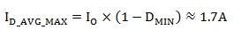 續流二極管上的最大反向壓降為VINMAX ,流過二極管的最大峰值電流為2.96A, 流過二極管的最大平均電流為