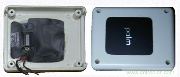 由于點金石表面是有一定凹陷下去的,非常契合palm的后蓋,而這個凹陷實在難以加工。另外,點金石里那圈非常細(xì)的線圈也是用膠水粘在外殼上的,比較難取下來。而且點金石上那個“plam”的金屬字也比較酷,因此于是我決定將點金石嵌入到移動電源中。