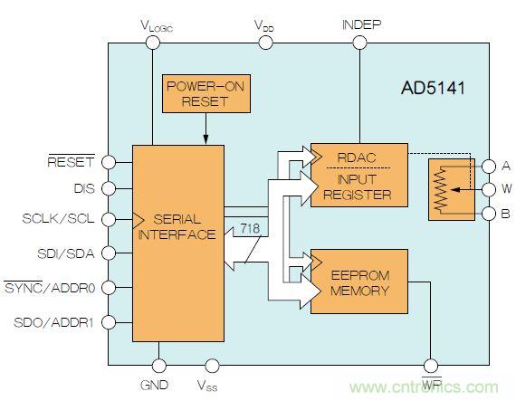 ADI公司的AD5141 digiPOT克服了其他數字電位計的某些問題。它提供: