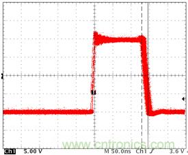 測試的目的是看上MOS管導(dǎo)通時,有沒有同時把下管打開,從而導(dǎo)致電源直接導(dǎo)通到地而引起短路。如圖三所示藍色曲線(Vgs_Lmos)就是下管在上管導(dǎo)通的同時,被帶了起來,如果藍色曲線的被帶起來的尖峰超過了MOS管的Vth要求,同時持續(xù)時間(Duration)也超過了datasheet要求,從而就會有同時導(dǎo)通的風(fēng)險。當然,這是大家最常見到的情況。