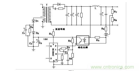 圖2 用UC3842驅動開關電源構成開關電源的原理圖