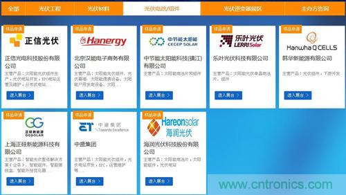 本次在線展會開設了光伏材料、光伏電池/組件、光伏逆變器及光伏工程四大展區,致力于提供一個實時高效的太陽能光伏品牌展示平臺,同時為全球采購商提供一個品牌匯集、信息全面的交流平臺,讓企業及個人足不出戶便能開拓新商機。