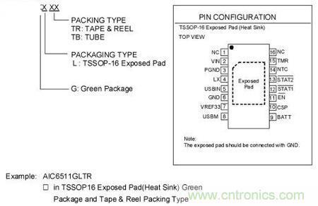 圖2為本文范例充電IC的腳位示意圖,充電計(jì)時(shí)保護(hù)時(shí)間由IC外部TMR腳位(Pin 15)的電容CTMR設(shè)定,CTMR選擇方式如下: