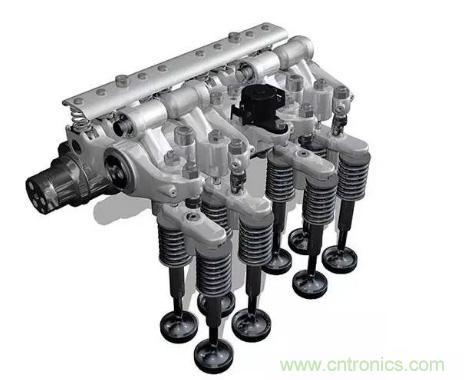 雖然發(fā)動機制動設計效果顯著,但是增加的車輛總重、車輛較低的滾動阻力和低排量發(fā)動機都要求更強的輔助制動功率,Jacobs的解決方案是高功率密度HPD 發(fā)動機制動系統(tǒng)。在高功率密度發(fā)動機制系統(tǒng)中,橋接器、控制閥和液壓執(zhí)行機構(gòu)都與常規(guī)裝置系統(tǒng),共同應用到進氣凸輪。驅(qū)動階段發(fā)動機保持四沖程模式,制動 階段發(fā)動機切換到兩沖程模式,從而制動沖程的數(shù)量加倍。Jacobs解決方案能夠更高效地利用渦輪增壓器,控制其最優(yōu)化制動充壓效果。