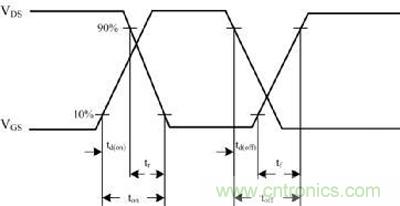 MOS管的損耗由開關損耗和驅動損耗組成,如圖1所示:開通延遲時間td(on)、上升時間tr、關斷延遲時間td(off)、下降時間tf。