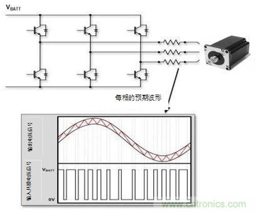 如圖1所示,基本上有三種不同的方法來測量三相電動機驅動系統中的電流:低側、直流鏈路和直列測量。圖1所示的是傳統三相PWM逆變器,該逆變器使用三對功率MOSFET(絕緣柵雙極晶體管IGBT也很常見)來驅動直流電動機。該圖還包括高側電流感應,其通常在顯著錯誤情況下使用,比如接地電路短路的情況。