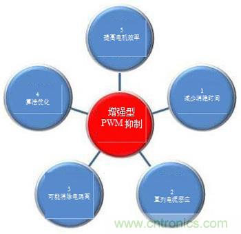 增強型PWM抑制的另一個優勢很微妙,但又很重要。通過增強型PWM抑制,當電流隔離并非系統所要求時,設計人員無需使用隔離的電流感應設備。客戶經常使用隔離設備來解耦PWM信號通過感測電阻時產生的噪聲。使用增強型PWM抑制不再需要去耦。