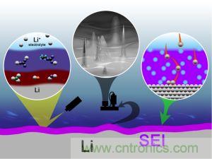 界面問(wèn)題是解決鋰枝晶問(wèn)題的關(guān)鍵,傳統(tǒng)的有機(jī)碳酸酯類電解液所形成的SEI膜缺少?gòu)椥裕瑥亩鴮?dǎo)致在界面波動(dòng)時(shí)SEI膜非常容易受損,使得庫(kù)倫效率下降,因此通過(guò)一定手段改善金屬鋰負(fù)極的表面結(jié)構(gòu),對(duì)于提升金屬鋰負(fù)極的穩(wěn)定性是非常有幫助的。例如在金屬鋰負(fù)極的表面形成一層具有一定強(qiáng)度的人造SEI膜(如Li3PO4),能夠很好的穩(wěn)定界面,抑制鋰枝晶的生長(zhǎng),此外具有良好的機(jī)械強(qiáng)度和電化學(xué)穩(wěn)定性的固態(tài)電解質(zhì)是抑制鋰枝晶的有效手段。電解液添加劑也是改善金屬Li界面穩(wěn)定性的常用方法,例如在碳酸酯類電解液中添加少量的低還原電勢(shì)的堿金屬離子,如Cs+和Rb+,在局部出現(xiàn)鋰枝晶,導(dǎo)致此處電流密度增大時(shí),Cs+和Rb+能夠快速聚集在鋰枝晶表面,形成一層靜電層從而防止Li繼續(xù)在此處沉積,達(dá)到抑制鋰枝晶生長(zhǎng)的作用「1」。
