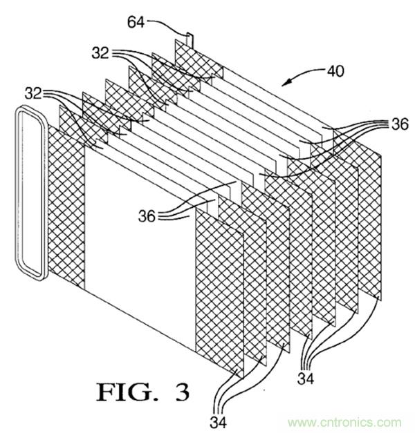 下圖Fig3是雙極性電極的堆疊stack,可以稱之為電堆40。其中,32是隔膜;34是集流體;36是雙極性電極,兩側(cè)分別是正負極活性物質(zhì)。基本結(jié)構(gòu)與上面的示例是一樣的。